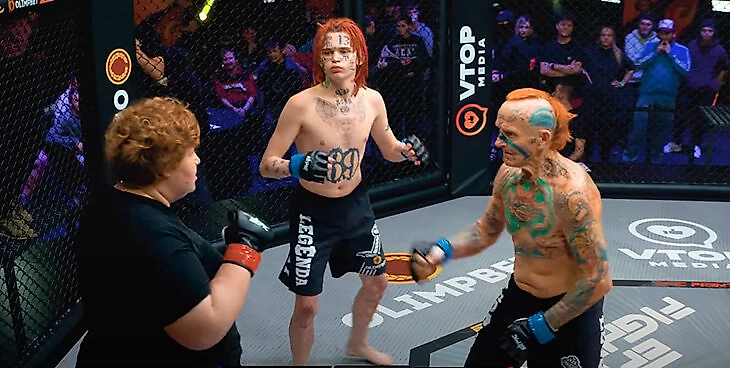 На первом турнире боксер из Латвии по кличке Русский Тайсон рубился с тату-мастером. А карлик-бодибилдер уничтожил друга Олега Монгола в стиле Хабиба