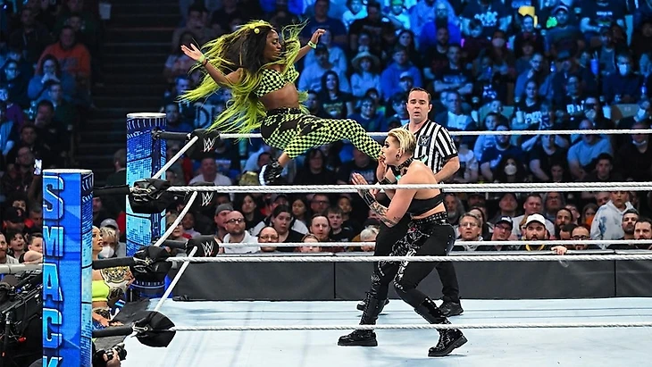 Учитывая обстоятельства, которые не давали некоторое время случится титульному матчу за женские командные чемпионства WWE – тут уж не позавидуешь Лив Морган, которой пришлось проводить одиночные встречи против Наоми и Саши Бэнкс. Вот и настала пора мисс Рипли проявить себя в одиночных стычках, правда получается что у Рии будет только встреча с Наоми в данный момент. Если конечно вдруг на следующей неделе снова не сорвётся титульный бой по каким-то причинам и Рипли не дадут возможность одиночной схватки против Саши Бэнкс — так сказать закольцевать эффект этого мини-сторилайна. Не исключаю вариант того, что WWE решили растягивать время, чтобы довести дело до назначения этого титульного матча на условном кик-оффе WrestleMania Backlash.