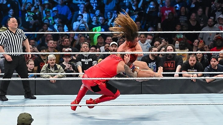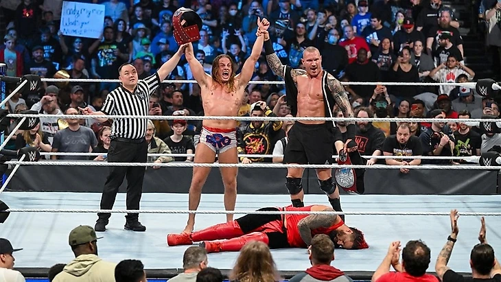 Личное мнение автора обзора: отдельным хайлайтом всего матча были эмоции Рэнди Ортона, который не только мимикой лица, но и телодвижением показывал переживания за командного партнёра и подчёркивал тот факт, что даже матч 1 на 1 тут имеет весомое значение по дороге к WrestleMania Backlash, на котором уже состоится один из самых больших матчей этого года в новом сезоне после Мании 38. И думается что как раз такими вот одиночными стычками WWE рассчитывают растянуть билд-ап к этому матчу, чтобы восприятие унификационного матча становилось всё более животрепещущим. Этот поединок между Джимми Усо и Мэттом Риддлом выдался хорошим и в целом оправдывал место в выпуске — Джимми уверенно доминировал с постоянной блокировкой атак Риддла и контратаками на ходу, а Мэтт был в статусе андердога, но одновременно и сам рвал-метал одного из Усо, тем самым постоянно удерживая рамку равенства сил в матче. По сути он и тащил именно своим ринг-скиллом, ибо что Джимми, что Джей — не самые прям уже выдающиеся исполнители (у того же Соло Сикоа побольше приёмов в арсенале будет, откровенно говоря). Но опять же основой матча был психологический твист билд-апа к титульному бою для WrestleMania Backlash и старт этой дороги выдался добротным, да и в целом начало весьма хорошее. Главное, чтобы дальше было только лучше, чтобы в конечном итоге унификационный титульный матч выдался отличным во всех отношениях — потому что по сути этот бой один из претендентов на звание мэйн-ивента грядущего PLE (если в последний момент Роману Рейнсу не дадут подготовленного проходного оппонента, хотя Рейнсу было бы полезно побыть в оупенере довольно проходного шоу, у него подобный опыт в рамках его персонажа уже был и никто от этого не пострадал).