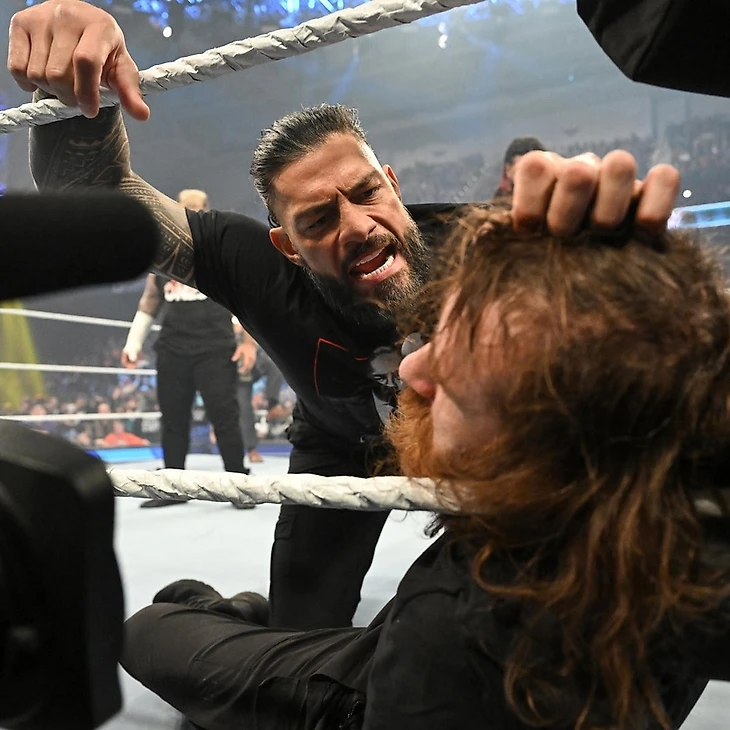 – Перед выпуском показали события мэйн-ивента Royal Rumble 2023. После победы Романа Рейнса над Кевином Оуэнсом чемпион пытался заставить Сэми Зейна с концами отречься от старого друга, избив его до полусмерти. Зейн не только отказался от этого типа финального испытания, но и пытался убедить Рейнса в том, что это лишнее, что он уже доказал всё что необходимо было. Роману это не понравилось и он старался надавить на Сэми, даже впихнув ему в руки стул. Это стало ошибкой — Зейн нанёс свой удар в спину Рейнсу, за что ему отплатили Джимми Усо и Соло Сикоа моментально. А вот Джей Усо отказался от этого ответа, видя как его семья буквально сходит с ума, покинув ринг. Этот жест разъярил Рейнса и тот едва не добил Зейна стулом до полусмерти, по сути забыв про Оуэнса. А перед началом событий выпуска оставшейся The Bloodline встретила Кайла Брэкстон для уточнения статуса Джея Усо. Рейнс проигнорировал вопрос интервьюера, а Хейман после парочки скабрёзлых шуток по классике дал понять — это семейное внутреннее дело и никаких эксклюзивов сейчас не будет (Вот и затравки пошли на старте);
