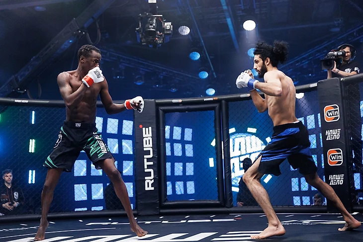 После боя в клетку вышел чемпион лиги в наилегчайшем весе Максим Намитов и провел стердаун с победителем — Морисом Болеяном.