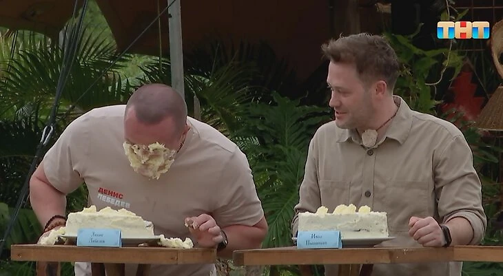 Второе испытание – с тортами, где лицом нужно было сдвинуть кусок в 173 грамма. Чей результат ближе – у того иммунитет на голосовании.