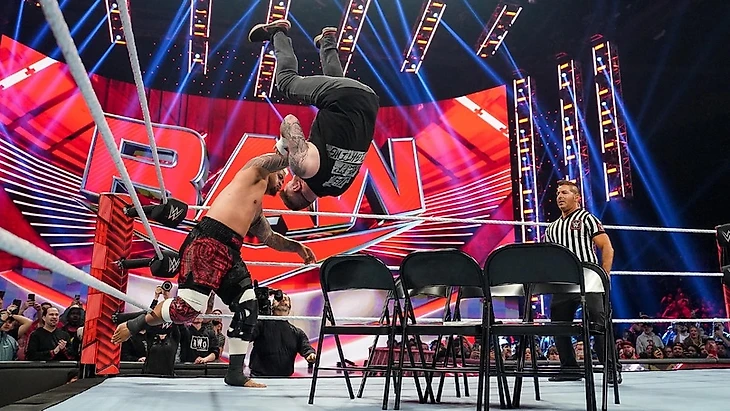 Мы в Провиденс, штат Род-Айленд, на арене Amica Mutual Pavilion, и шоу открыл Эдж. Он насладился положительной реакцией на себя, а потом сказал, что именно из-за такой реакции все еще продолжается заниматься тем, чем занимается. Все знают, почему канадец появился сегодня на шоу. Поэтому он пригласил Финна Балора на ринг, чтобы они разобрались друг с другом. Judgement Day появились на стэйдже в полном составе. Финн держал в руках микрофон. Балор сказал, что вот он, появился во плоти. И впервые в жизни он согласен с «толпой клоунов». Все хотят узнать, чего добивается Эдж, так что пусть «Запрещенная Суперзвезда» выскажет уже все. Член Зала Славы ответил, что появился не для разговоров, а чтобы закончить противостояние. Но ирландец ведь так и будет стоять на стэйдже? А если Эдж направиться к нему, то Финн натравит своих друзей на канадца (которых сам Эдж назвал именами персонажей из «Семейки Аддамс»). И на следующей неделе все повторится. Канадец вспомнил, что Финн вызвал его на матч на WrestleMania несколько недель назад. Что ж, раз Балор так и не хочет ничего делать, Эдж принимает вызов. «Принц» обрадовался этой новости, решил напомнить об Extreme Rules, однако Эдж его заткнул. Ведь Балор сам хотел послушать легенду. Последний год с момента возвращения Эдж потратил на Judgement Day. Предыдущий год он вынужден был драться перед экранами вместо зрителей. Времени на фигню у Эджа не осталось.