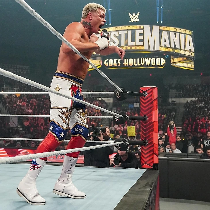 После матча победитель Королевской Битвы взял микрофон и сказал, что продолжает получать предупреждения от Пола Хеймана, который не советует Роудсу вмешиваться в дела Bloodline. Но Коди не готов прислушиваться. Он не работает ни на Bloodline, ни на Хеймана. Так что если «American Nightmare» захочет появится на шоу и встать плечом к плечу с Зейном или Оуэнсом, то сделает это. Также Хейман говорил не делать эту вражду личной. Забавно. Ведь эта история была личной с того самого дня, когда Коди появился на шоу в возрасте 21 года, а снимал его выступление тот же оператор, что и сейчас. Это личное, потому что каждую неделю Роудс вынужден бороться со слезами, которые накатываются на глаза. Личное, потому что он носит этот защитный костюм. И Роудс говорит не о халате, в котором выходит на матч, а о костюмах, в которых появляется. Он носит их не потому что кем-то себя возомнил, а потому что хочет быть кем-то. Хейман говорит о том, что нужно признать Романа Рейнса? Коди признает его. Настало время признать Коди. Роудс не идеален, но то время, что он провел в WWE с момента возвращения, было идеальным. Он непобедим. Коди вырос, считая себя «принцем» этой индустрии, но у него не было ничего, что выдавало бы в нем принца. Поэтому 2 апреля, когда солнце зайдет в Голливуде, закончится и «царствование поколения» Романа Рейнса. 2 апреля Коди сделает это ради всех, кто прошел с ним весь этот путь. Роудс больше не будет ждать. Он удержит Рейнса в ринге и станет первым Роудсом, который назовет себя Неоспоримым чемпионом Вселенной WWE. Покидая арену, Коди пообщался с детишками в первом ряду.