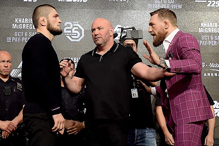 Конор использовал встречу с Путиным против Хабиба на пресс-конференции перед их боем. Там Нурмагомедова спросили об их взаимоотношениях с Путиным и отсутствии совместной фотографии с матча. Хабиб ответил, что не любит фотографироваться. «Ты проявляешь неуважение к своему президенту Владимиру Путину? Или что под этим подразумеваешь? Объясни, что ты имеешь в виду. Фальшивая крыса», – говорил Конор.