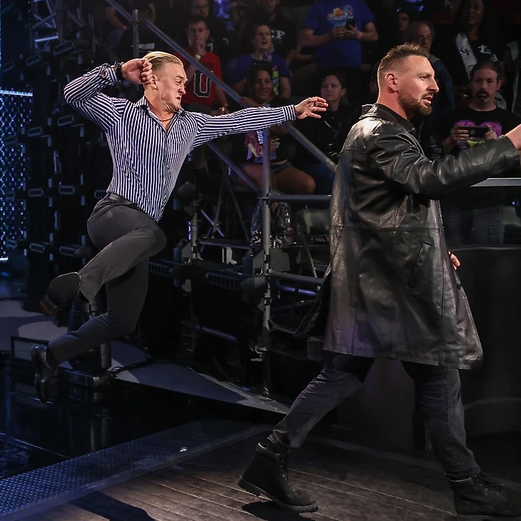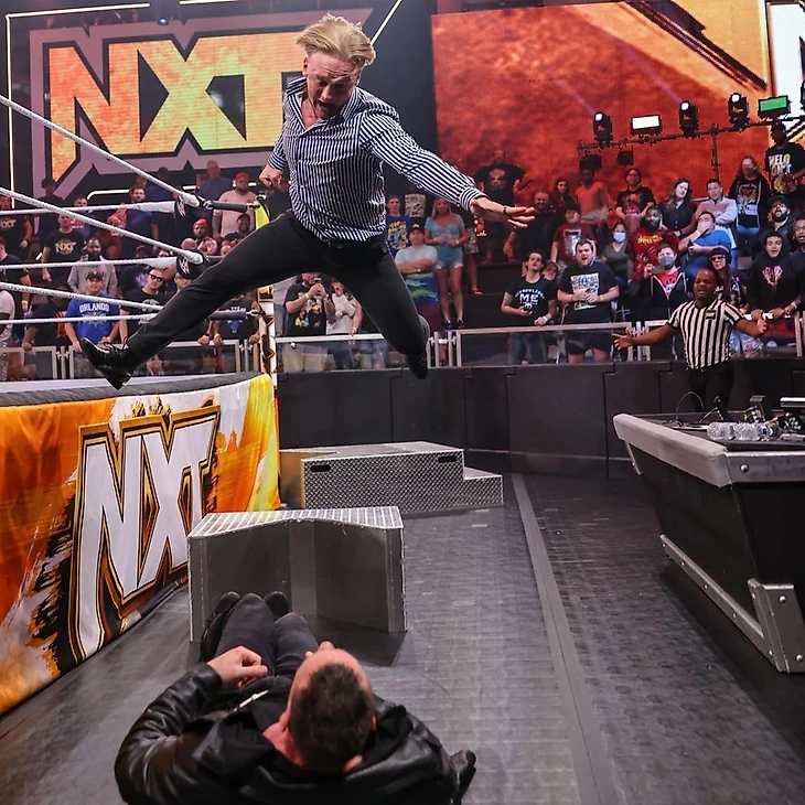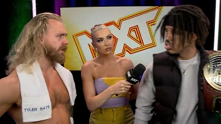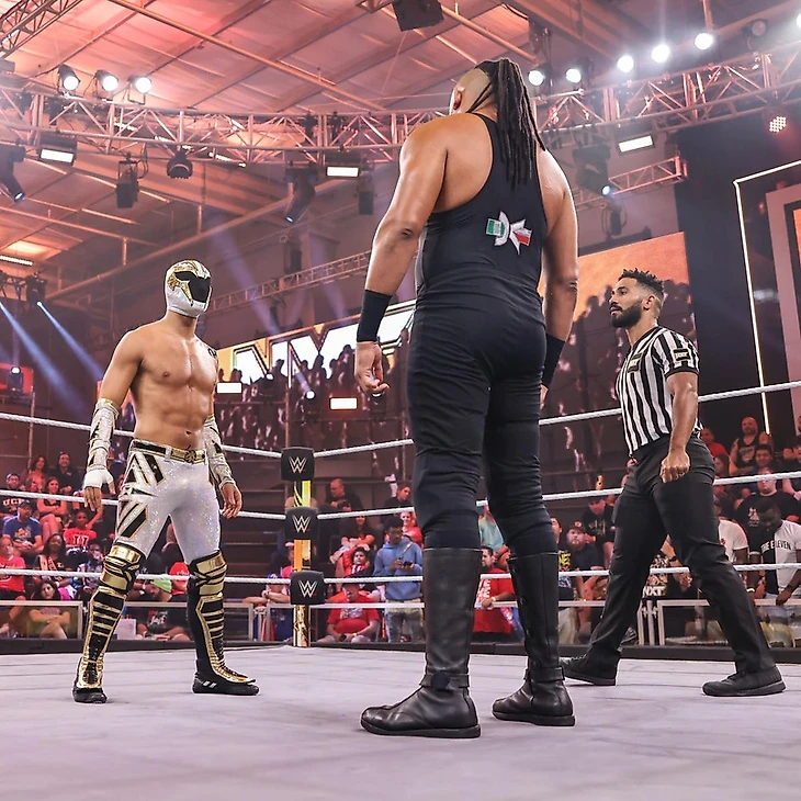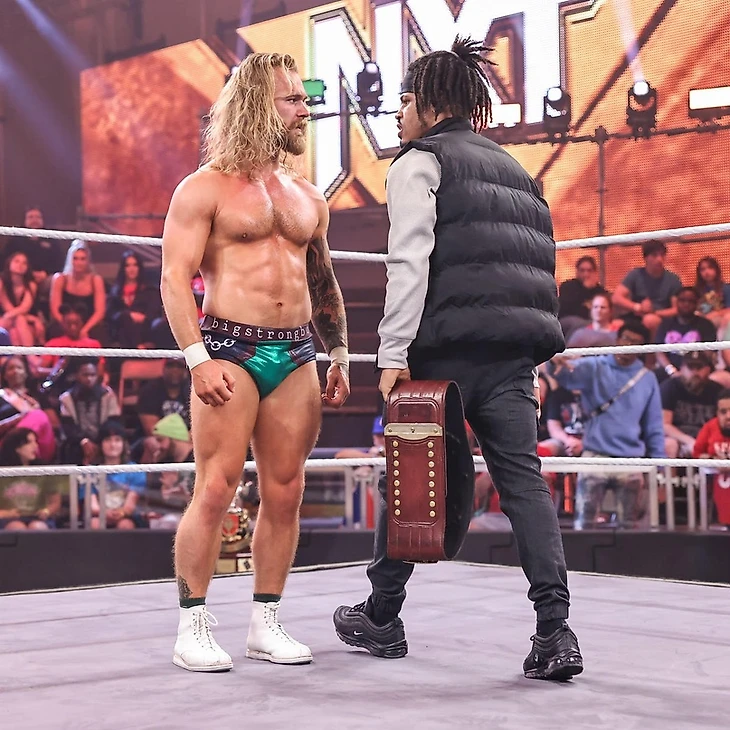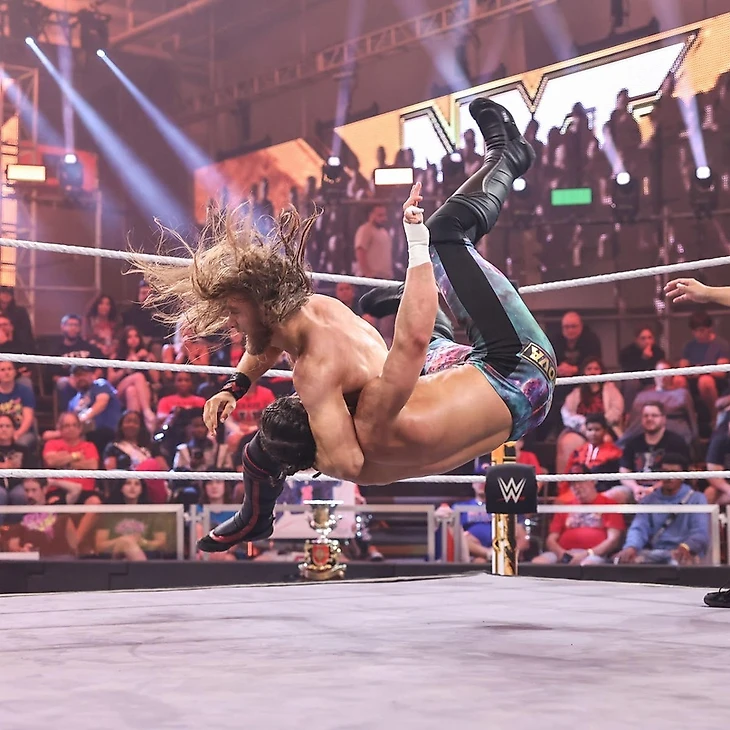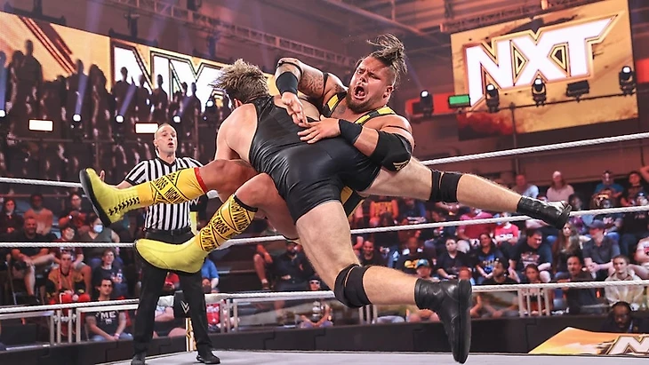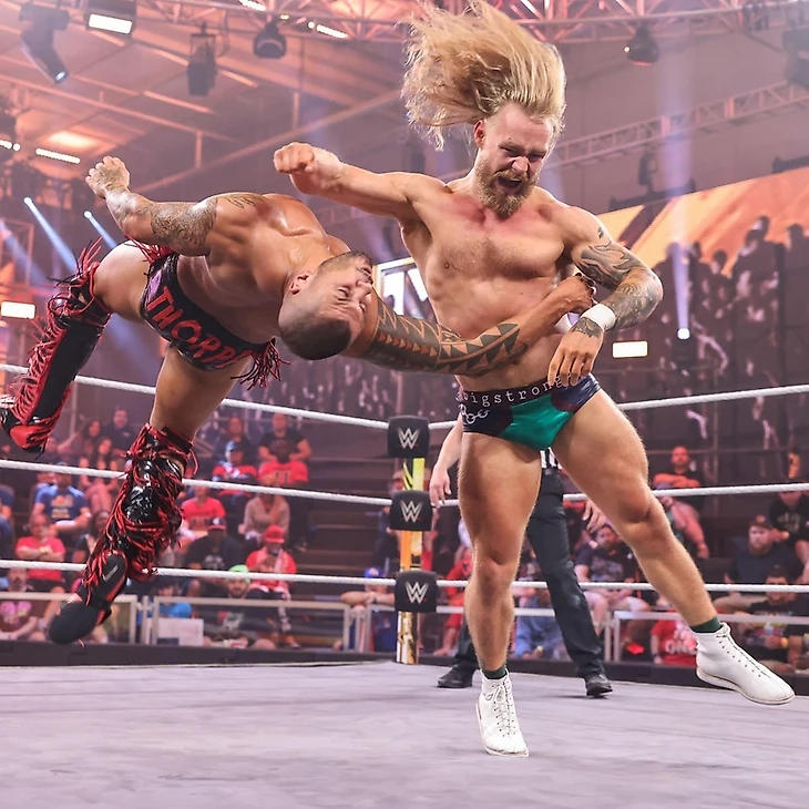 Доброго времени суток, Ассалому Алейкум, дорогие друзья! На связи Юлий Марков, и я не могу оставить свежайший выпуск NXT без обзора. Тем более, что у нас тут последний еженедельник перед PLE в воскресенье. Да, на этой неделе вы, наверное, часто будете читать слова «последний выпуск перед платным шоу» в обзорах. Anyway. Нам обещали полуфиналы турнира женское чемпинство, бой между Нэйтаном Фрейзером и Ноамом Даром и прочую подготовку к Battleground. Я посмотрел тайминги шоу, они меня пугают, отзывы противоречивые, в общем опять нам придется самим во всем разбираться. Мы все еще в Орландо, штат Флорида, на арене Capitol Wrestling Center, и нам снова показали промо участниц женского матча перед самим поединком, но на этот раз с графикой. Лайра заявила, что всего 2 девушки стоят на ее пути к женскому чемпионству NXT. Судья снова свела Валькирию с Корой Джэйд, но Лайра пройдет сквозь Кору и умчит на крыльях в Лоуэлл. Джэйд же заявила, что NXT хочет, чтобы она стала женской чемпионкой. Более того, NXT нуждается в ней, как в женской чемпионке. Кора видела, как Лайра смотрела на женское чемпионство неделю назад. Чемпионство, которое Кора уже считает своим. В любом случае, сегодня Валькирия будет, лежа поверженной на канвасе, смотреть на Джэйд над ней, а потом увидит, как Кора станет чемпионкой на Battleground. Тиффани Стрэттон же заявила, что никогда не просила, чтобы ее сделали главной девушкой в NXT, но это просто случилось. С тобой такое случается, когда ты центр Вселенной. Стрэттон заранее просит прощения, хотя ей не стыдно, перед Роксанной Перес, которую она победит сегодня, а затем отправиться на Battleground в бизнес-классе, став там чемпионкой. Сама Рокси, снова стала говорить о том, что живет мечтой… Однако, они с Тиффани находятся в реальном мире, а не в фантазии. Пока Стрэттон создает моменты, Перес творит историю, и Тиффани не сумеет остановить ее сегодня на пути становления двукратной женской чемпионкой. Cтартовый лок-ап, и Кора провела удар коленом в корпус, решив, что этого достаточно. Валькирия тут же отбилась, провела серию ударов, но не смогла провести спрингборд кроссбади, упав с канатов. Тем не менее, она поймала Джэйд в сворачивание до 2, провела суплекс до 2. От атаки у канатов Кора ушла, провела колено сопернице, чоп и дропкик, предварительно закрепив Лайру между канатов. Следующую атаку ирландка реверсировала в сворачивание до 2, и Кора попыталась выйти на болевой, но в итоге провела только кик в затылок до 2. Коронный спрингборд стомп от американки, и она заключила Валькирию в чинлок, с которым та справилась, нанеся несколько ударов. Встретив оппонентку бутом в углу, Лайра провела миссл дропкик, затем еще несколько киков и northern-lights суплекс. До 2, и следующий суплекс Кора реверсировала в гильотину, с которой оппонентка справилась, заблокировав затем колено в голову в углу и шарахнув еще один суплекс до 2. Джэйд в ответ обрушила соперницу на канат, но Лайра увернушась от бэк элбоу, а потом провела коронный спиннинг хук кик, одержав победу. После матча Валькирия стала любоваться поясом, до которого ей остался один матч, но Кора провела ей чоп бьлок. А потом добавила удар трубой в колено. Фанаты чантили «One More Time!», однако прибежавшая толпа рефери прогнали Кору за кулисы. Оценка: 1½. Я уверен, что девушки старались, но у них не получилось. В матче был брак, причем его было достаточно для 3 с по