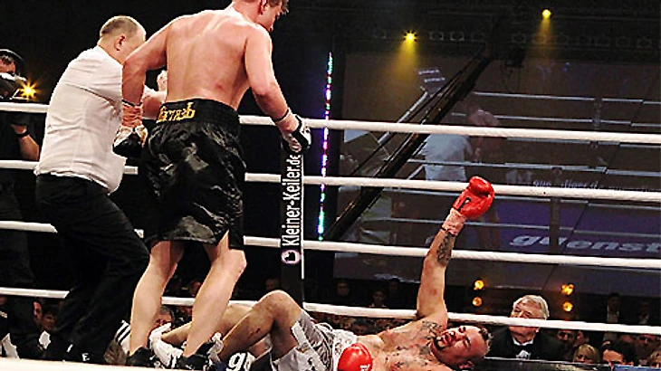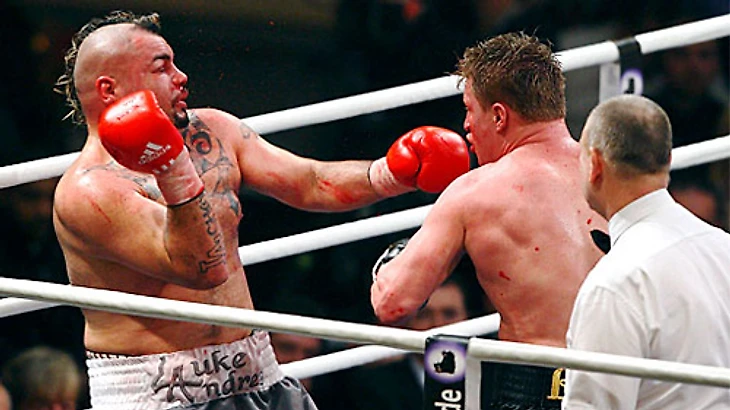 В центре ринга Хук перебивает американца, Ричардс плывет, Хук месит его в центре ринга, Адам не стоит на ногах, но и не падает. Рефери кидается вперед, чтобы остановить бой, и падает на настил вместе с Ричардсом.
