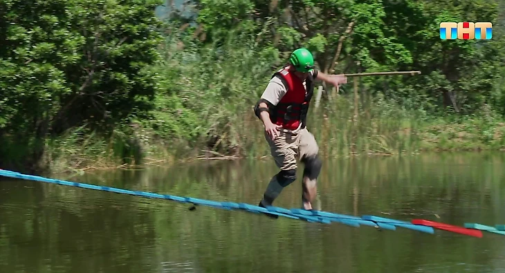 На командное испытание отправились все четыре участника. Цель – поделиться на пары и пройти по подвесному мосту, двигаясь навстречу друг другу. «С этим у меня должно быть меньше всех проблем. Учитывая долгие годы занятий боксом, все должно получиться. Если не получится у меня, из ребят никто не сделает», – сразу обозначил Лебедев.