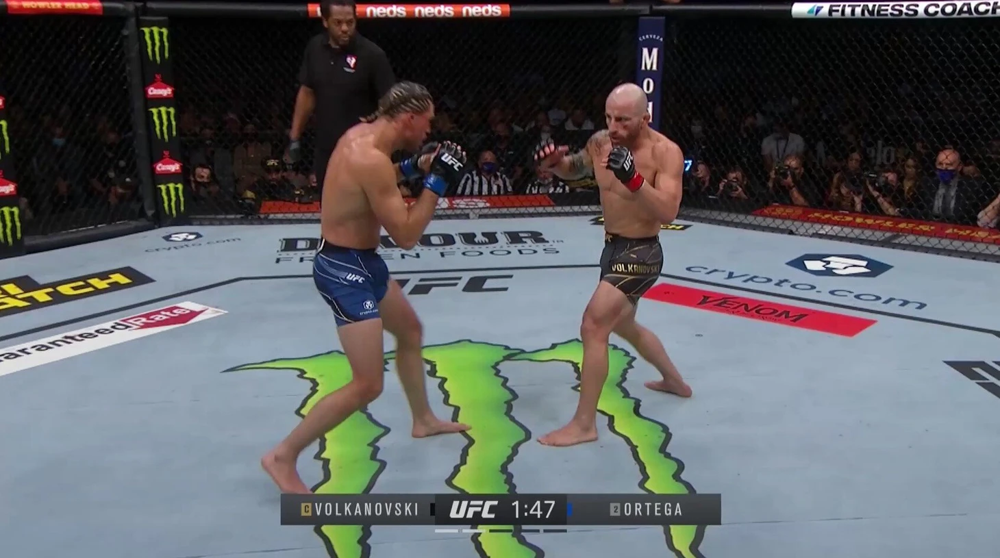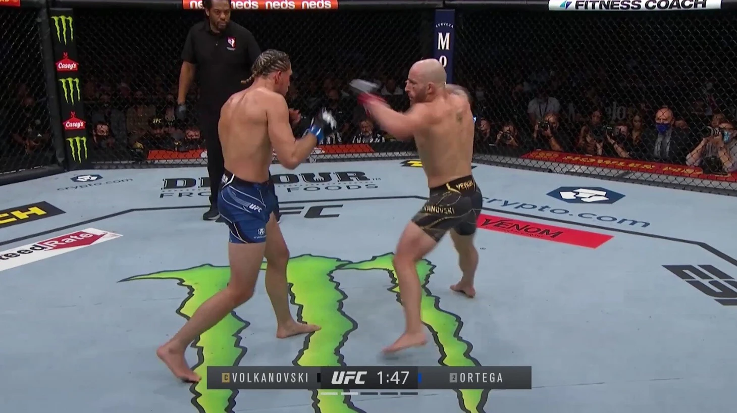 Бой с Ортегой – образцовый в плане работы в стойке. Волкановски показал разницу между активным и скоростным ударником и достаточно медленным джитсером. Волкановски нанес 214 точных ударов (60% попаданий), Ортега – лишь 88 (37% попаданий).