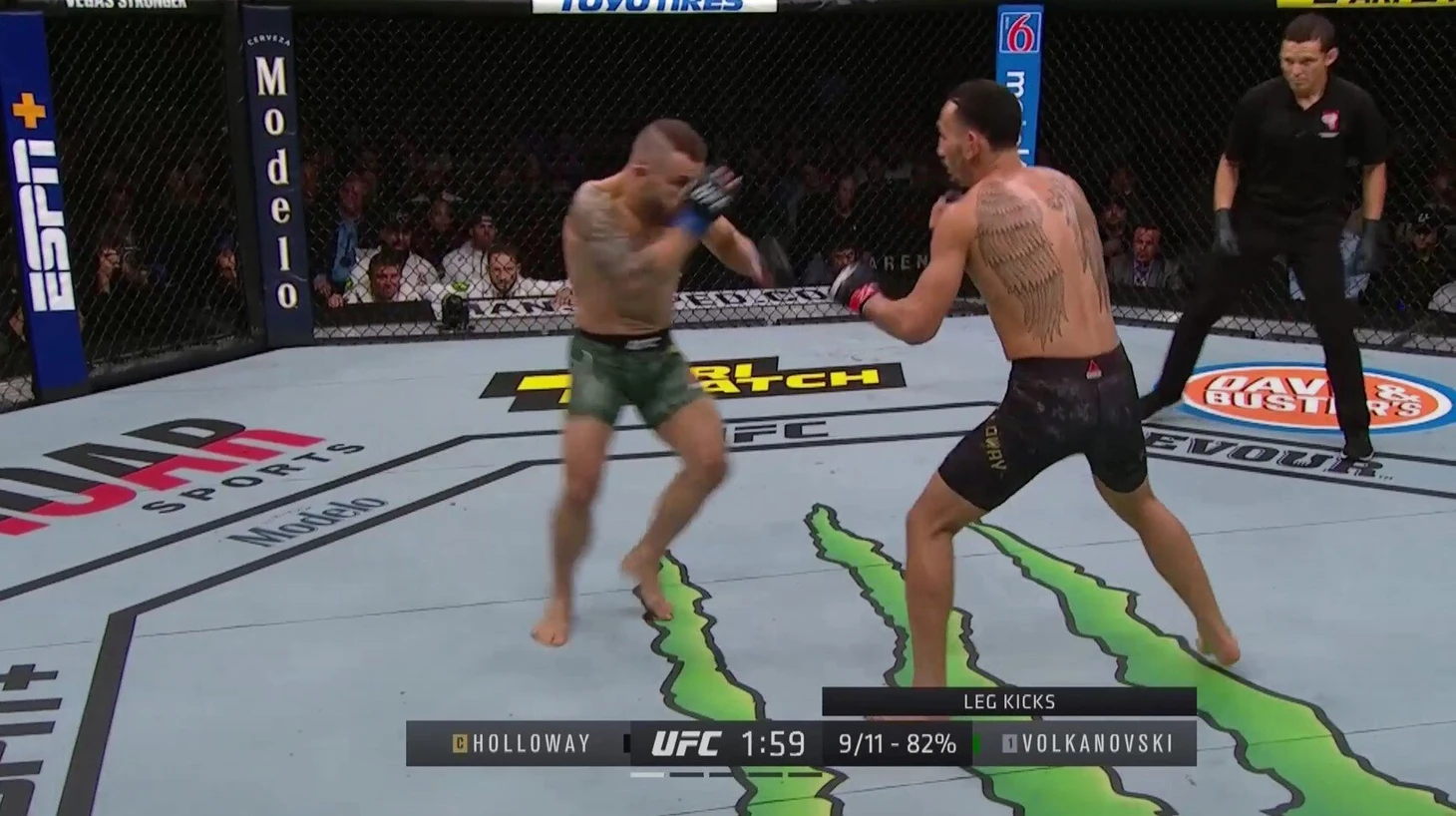 Такими ударами Волкановски ослабил Холлоуэя: не только заставил драться в неудобной стойке, но и замедлил, сделав более уязвимым для атак на сближении, на которых строится вся работа Алекса против более высоких оппонентов.