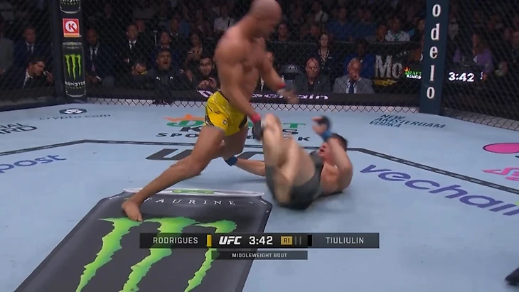 Через несколько секунд Родригес поднял спину, в этот момент Тюлюлин решил, что поднимется, но просчитался: