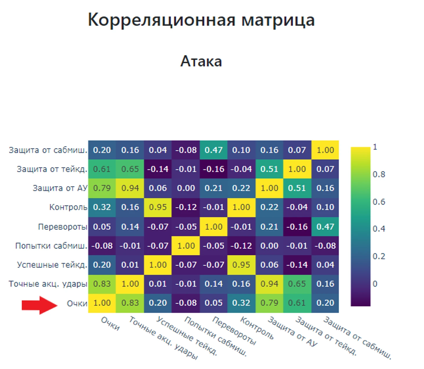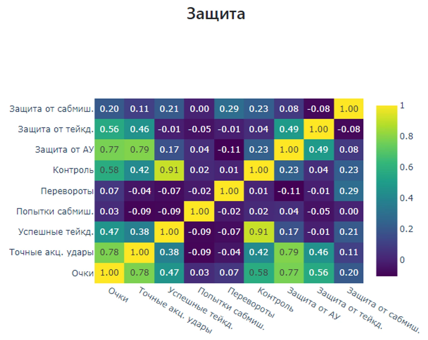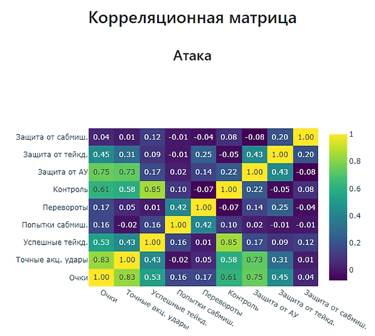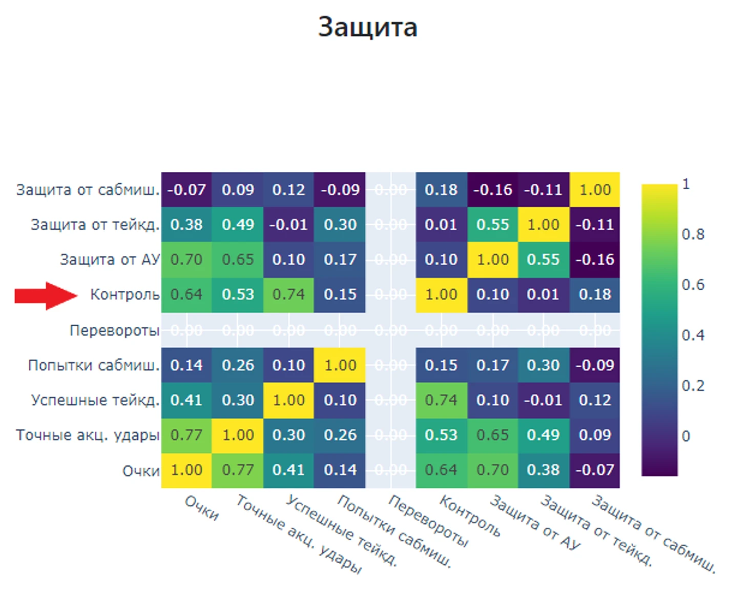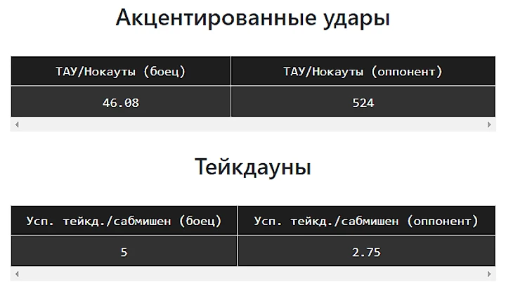 Подведем итог, нас интересуют показатели «Точные акцентированные удары», «Защита от точных акцентированных ударов», «Контроль», «Успешные тейкдауны» и «Защита от тейкдаунов».