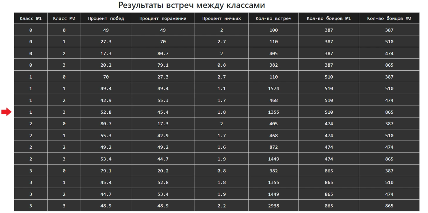 Как эти классы встречаются друг против друга? Смотрим в таблицу «Результаты встреч между классами»
