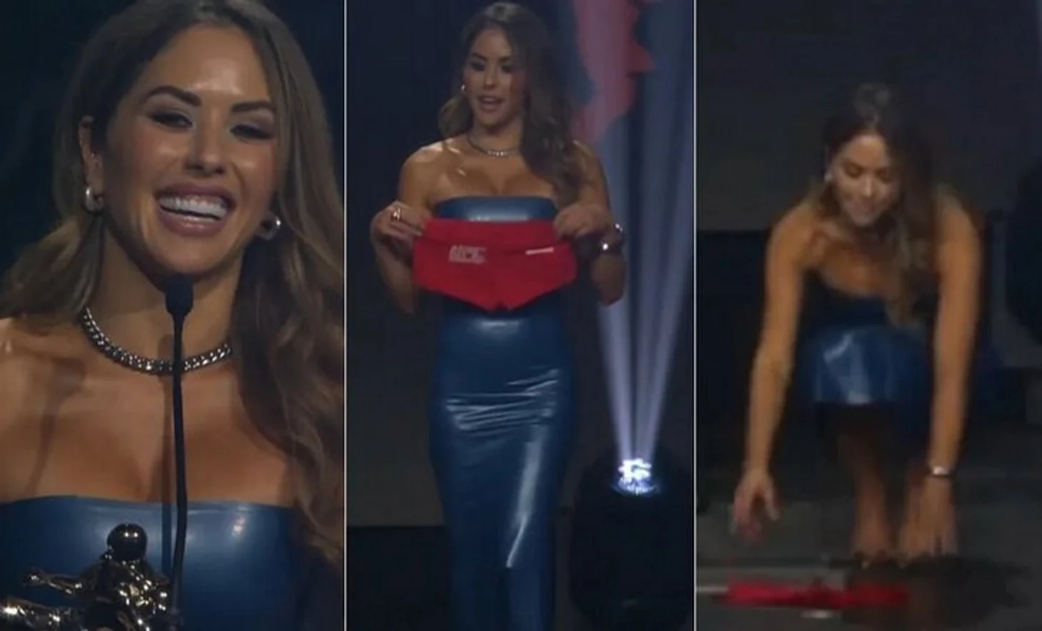 Экс-боец UFC Чейл Соннен, который вел мероприятие, принес трусы октагон-герл и предложил Палмер положить их на пол. Так делают бойцы, когда заканчивают карьеру, но с перчатками. Девушка согласилась, а фанаты – грустят в соцсетях.