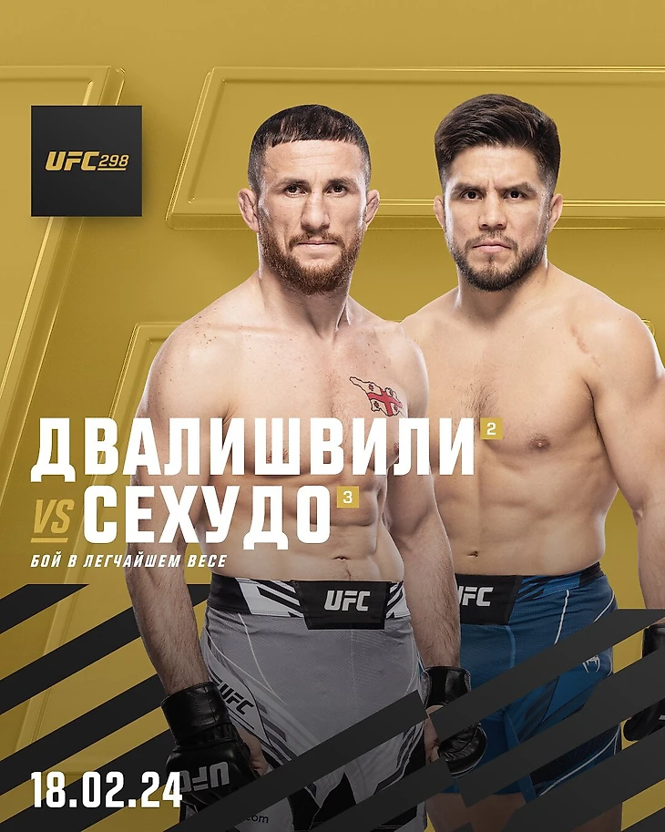 Очередной турнир UFC 298 состоится 17 февраля в Анахайме, Калифорния, и пройдет в спортивном комплексе Honda Center. Главным боем вечера станет поединок чемпиона в полулегкой весовой категории между австралийцем Александром Волкановски и грузинским спортсменом Илией Топурия. В рамках основного карда выступит еще один боец из Грузии Мераб Двалишвили. Его соперником в легчайшем весе станет американец Генри Сехудо, который сравнительно недавно возобновил карьеру в ММА. Болельщики станут свидетелями поединка второго и третьего номеров рейтинга, соответственно. Начало бойцовского вечера в ночь с 17 на 18 февраля по московскому времени. Поединки основного карда начнутся не ранее 05:00 часов.