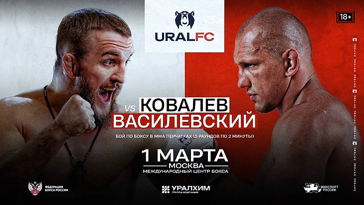 Известные российские бойцы Вячеслав Василевский и Владислав «Белаз» Ковалев выступят в главном поединке турнира Ural FC 6, который пройдет 1 марта в Москве, в Международном центре бокса в «Лужниках».
