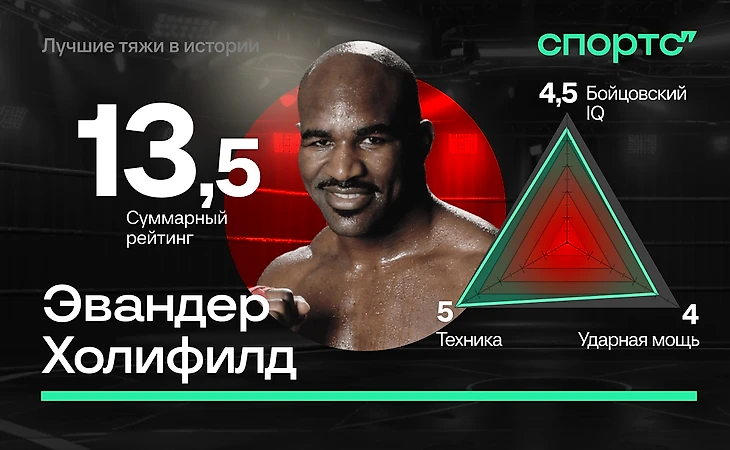 Конечно, для масс Холифилд стал культовым бойцом не благодаря званию абсолютного чемпиона мира в двух весовых, а из-за того самого укушенного уха в реванше с Тайсоном. Но давайте не забывать о его реальной боксерской мощи: Холифилд – редкий пример быстрого перестроения из любителя в профи, который не боялся разменов даже с более крупными соперниками.