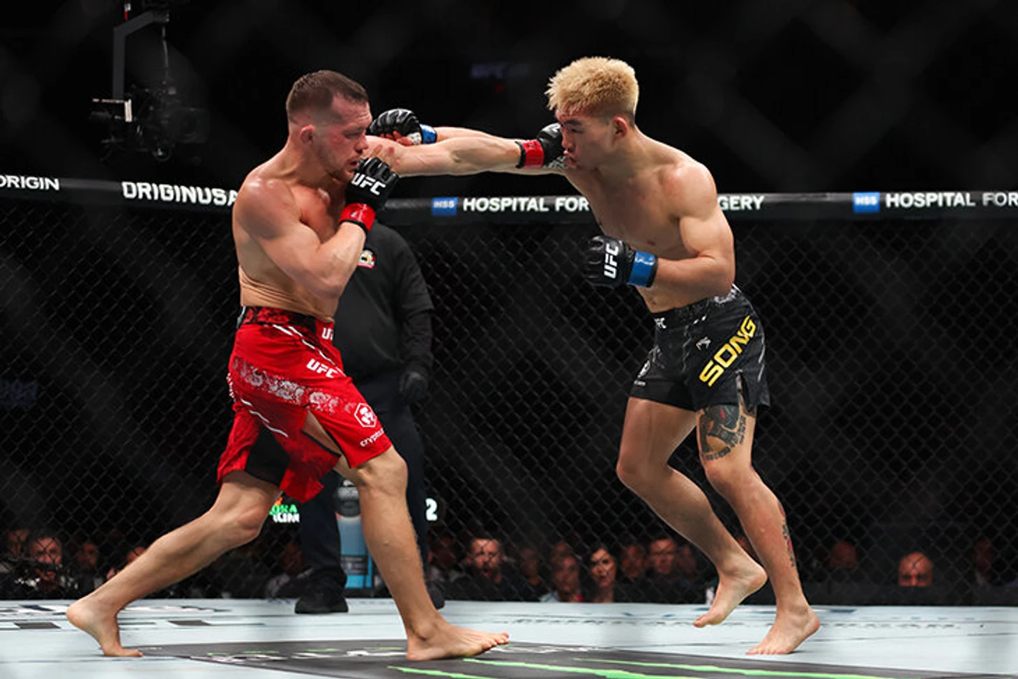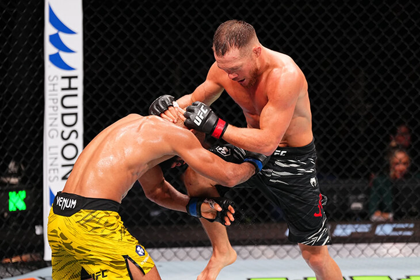 На последней минуте раунда Фигейредо зачем-то в центре октагона полез в клинч. Ян воспользовался шансом: разрядил серии на ближней дистанции, а Фигейредо закачался и снова был близок к нокдауну.