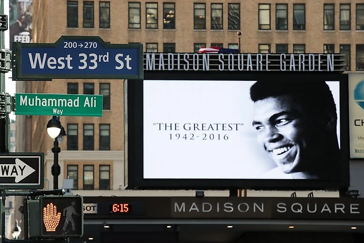Еще один город, где есть улица в честь Али – его родной Луисвилл в штате Кентукки. Там бульвар назван его именем с 1978 года. В Нью-Йорке в память Али временно переименовали часть 33-й улицы, расположенной возле легендарной арены Madison Square Garden.