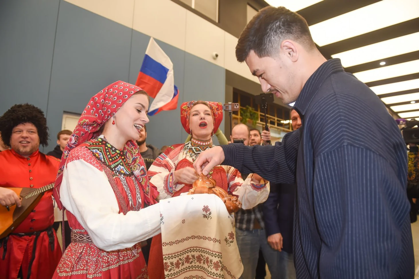 Дмитрия Бивола встретили дома под песню Виктора Цоя с караваем и российскими флагами. Чемпион вернулся в Москву