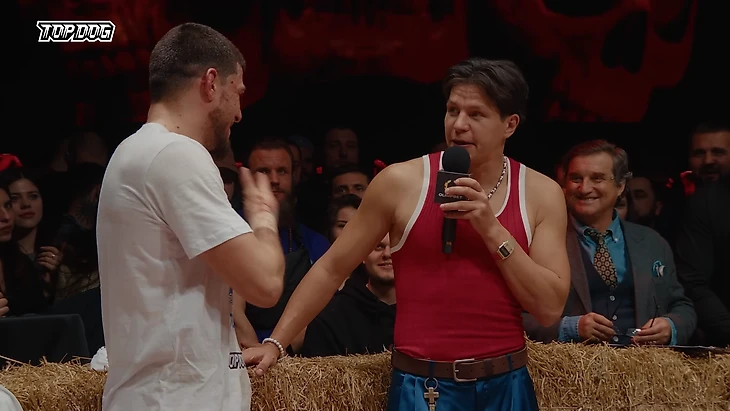 Дальше образы были все смелее, а критика – жестче. На последнем турнире Алеев выскочил на арену в белой шубе, за что его раскритиковал экс-боец Top Dog Суламбек «Алый Зверь» Шахгириев: