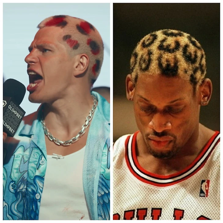 Алеев пошел дальше и на Top Dog 21 покрасил волосы в стиле баскетболиста Денниса Родмана – анималистичными пятнами.