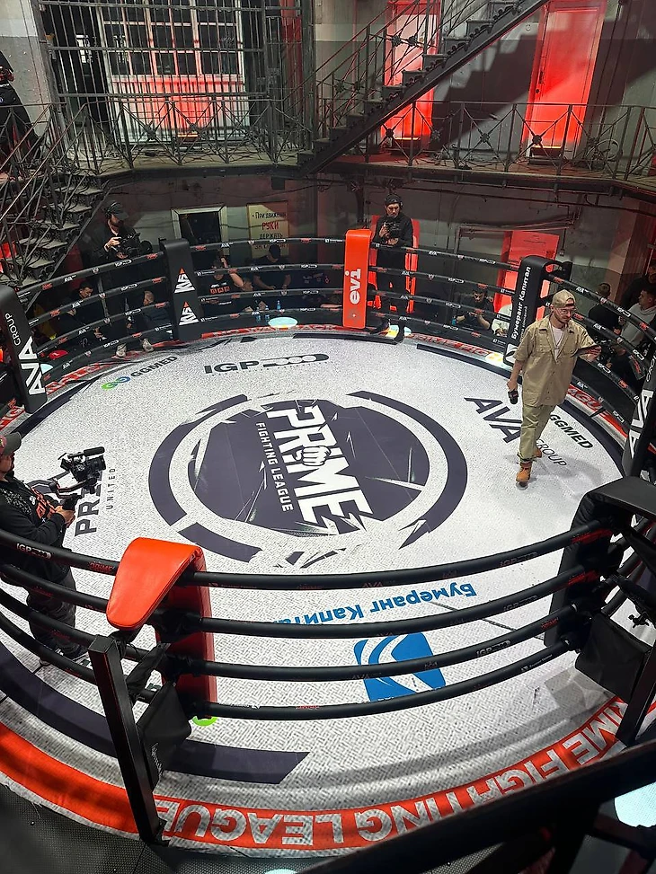 Одна из самых удивительных деталей – качество обзора. Ринг был установлен как бы на дне колодца, смотреть на него нужно было под очень большим углом с импровизированных балконов. По сути, сверху. И это давало идеальную картинку. Канаты и столбы ничего не закрывали. Ряды относительно ринга или клетки надо размещать именно так, как в «Крестах»: близко, но под большим углом.