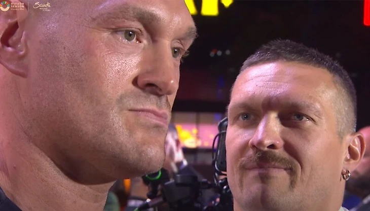 На той же пресс-конференции родился знаменитый мем: Усик очень долго не отводил взгляда от Фьюри.