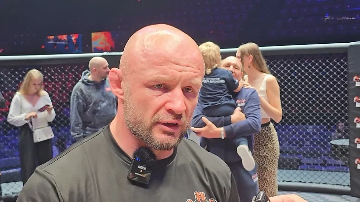 Соперник Шлеменко рассыпается уже в первом раунде – и после этого в клетке возникает, возможно, самая большая концентрация людей с фамилией Шлеменко на квадратный метр: жена, двое сыновей и даже отец. Последний – очень подвижный мужчина, который смотрит, как его внуки борются с другими детьми, пока главный Шлеменко дает интервью.