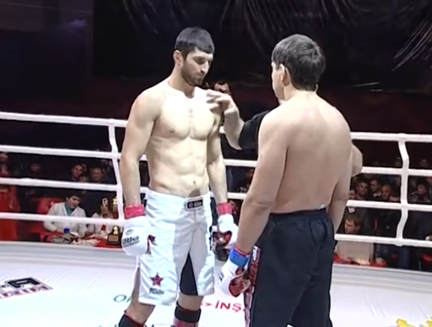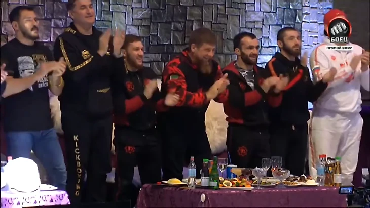 Нокаут привел в восторг Кадырова, смотревшего бой за столом с напитками. Вручать пояс вышел байкер «Хирург»: сначала повесил его вверх ногами на талию Анкалаева, но после подсказки исправил.