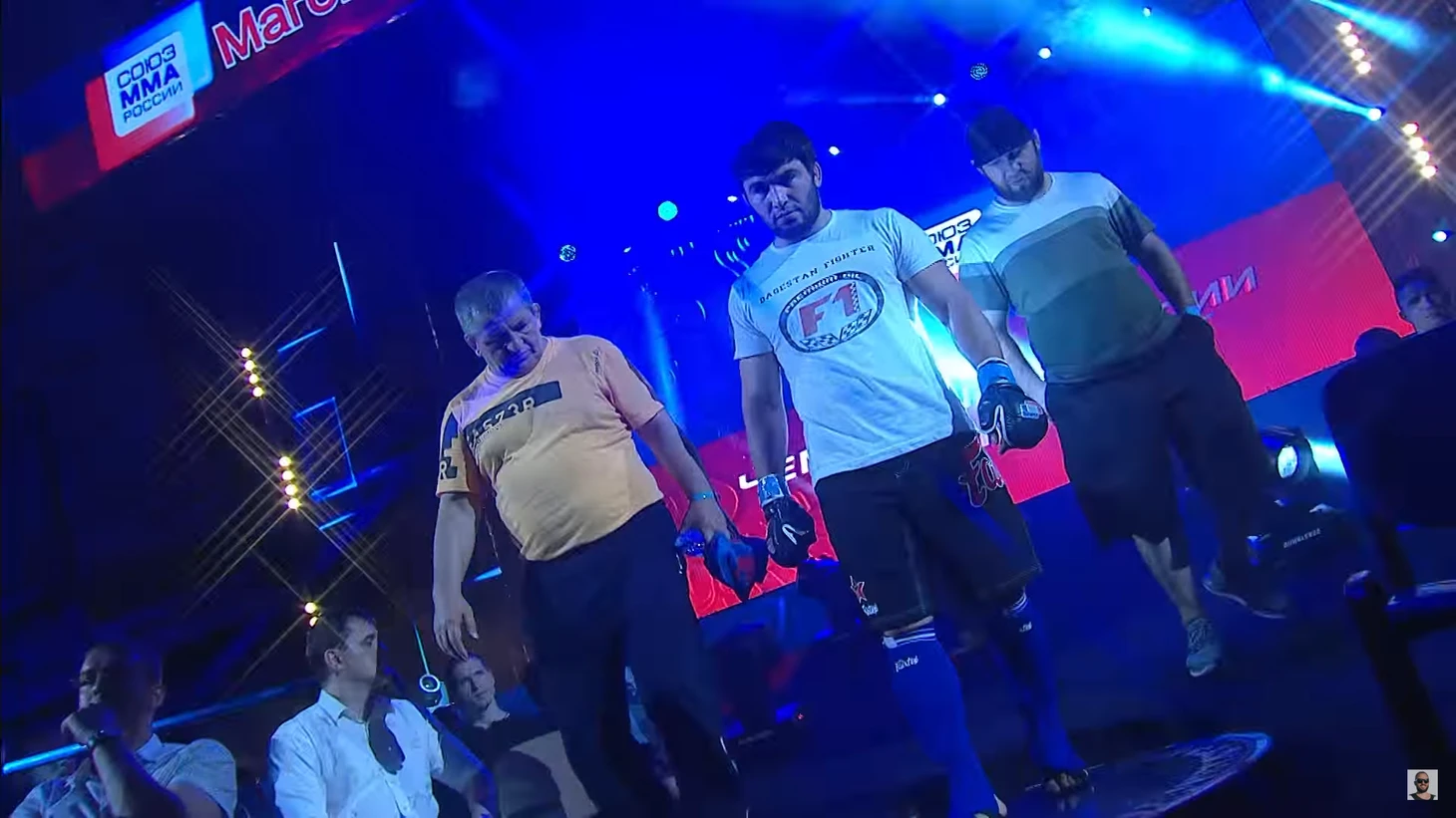 Анкалаев традиционно вышел под песню «Я горец» Хасбулата Рахманова. Тренер Сухраб Магомедов уже знал, что Анкалаева нужно взбодрить перед боем. Поэтому схватил за лицо, вызвав у него улыбку: