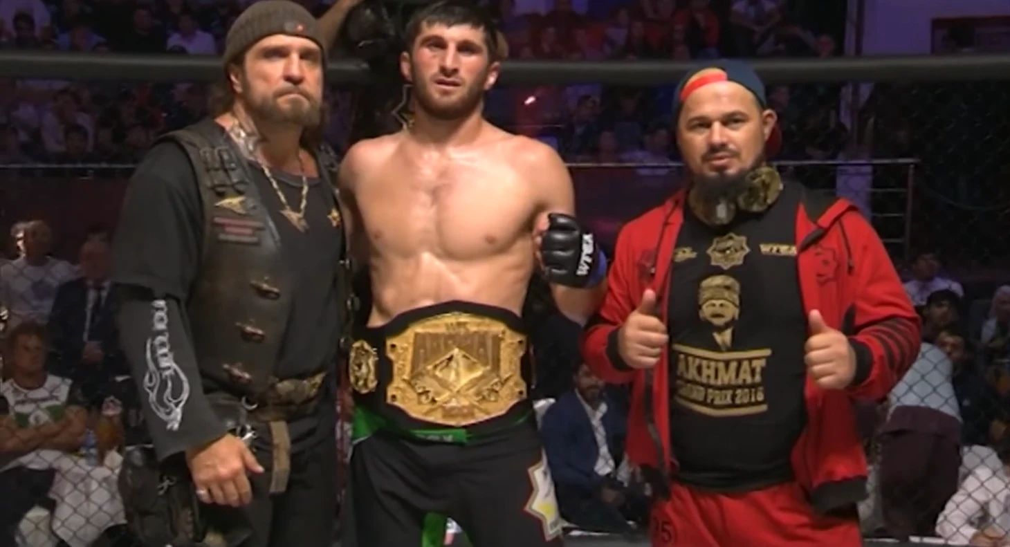 Анкалаев стал чемпионом в лиге «Ахмат», подравшись на скандальном турнире с сыновьями Кадырова. Получил пояс от байкера и быстро ушел в UFC