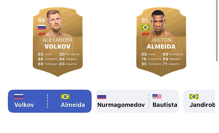 Рейтинг Волкова и Алмейды от Stats Fight