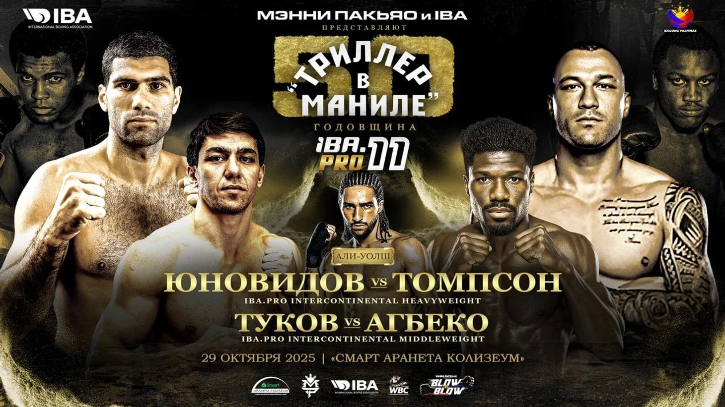 Российский боксёр Георгий Юновидов (11-1, КО 7) узнал имя нового соперника по бою 29 октября в Маниле (Филиппины) за пояс IBA.PRO Intercontinental в тяжёлом весе – им станет Крис Томпсон (16-6-1, КО 9) из ЮАР. Этот 10-раундовый поединок пройдёт в рамках турнира «IBA.PRO 11» и будет посвящён 50-летию легендарного шоу «Триллер в Маниле» и трилогии между Мухаммедом Али и Джо Фрейзером. Организаторами предстоящего вечера в Филиппинах выступят Международная ассоциация бокса (IBA) и известнейший боксёр Мэнни Пакьяо.