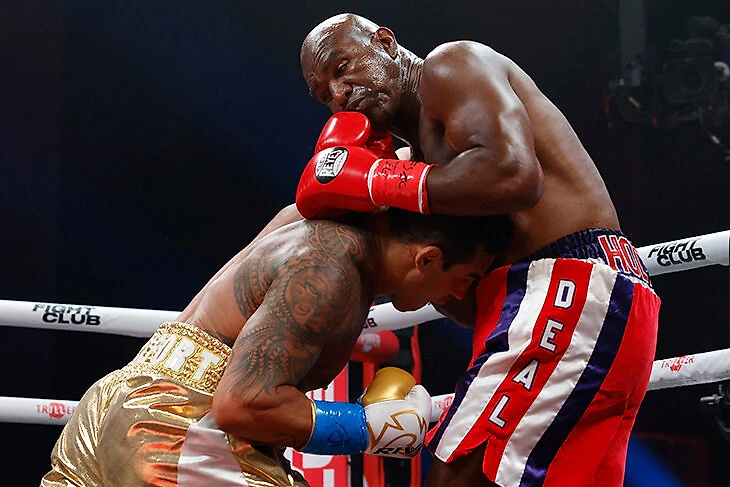 Из-за возраста так грустно выглядел 58-летний Холифилд, когда подрался в 2021-м с 44-летним Витором Белфортом. Внешне Холифилд выглядел как бодибилдер – даже мощнее Белфорта. Но в ринге с трудом стоял на ногах – тяжело передвигался и падал от любого тычка.