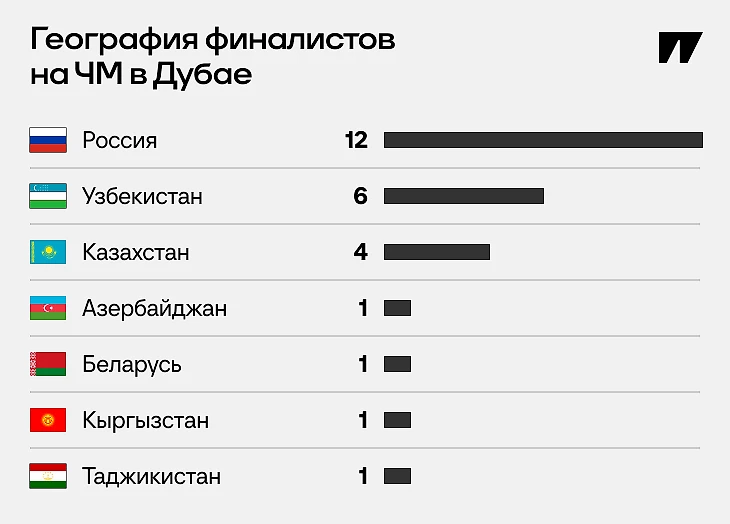 6. География призеров на ЧМ в Дубае поражает. В финалах участвовали только страны с постсоветского пространства: