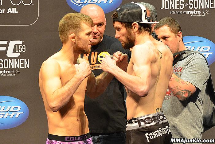 Брайан Каравэй – молодец. Поединок в целом скучный, но, узнав о бое за 6 дней он сумел и вес сделать и победил эффектно. За счет отработанных навыков задушил Джонни Бедфорда. Бойтесь улыбчивых, модных парней, которые всегда держат себя в форме, потому что им нравится хорошо выглядеть. Джонни Бедфорд же выглядит как идеальный клубный боец мма, начавший карьеру в боях на парковках и сараях. Худой, страшный парень с безумным взглядом с татуировкой «one man army». Биться начал, что доказать самому себе, что он жесткий парень, когда в очередном сарае местный «промоутер» попросил кого-нибудь из зала выйти подраться и тут же на месте составил пары противников, на глаз прикинув весовые категории.Бедфорд действительно жесткий и решительный, но ему катастрофически не хватает точности.