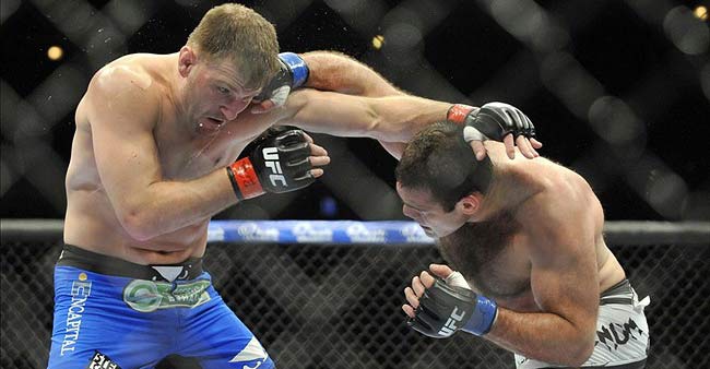 Гонзага неплохо начал, действуя вторым номером. Он кидал свой фирменный встречный справа, добавлял лоу-кик, и всё шло хорошо. Хорват шёл вперёд, забирал центр клетки, но ничего существенного не показывал. Его джебы приходились по большей части в блок и никакого урона бразильцу не приносили. Откровенно говоря, после того как Стипе разобрал на части «Большую деревенщину» Роя Нельсона, ожидалось, что то же самое ждёт и Гонзагу. Однако «зрелище», увиденное в первой половине боя, заставило усомниться в этом. Но самое интересное началось дальше.