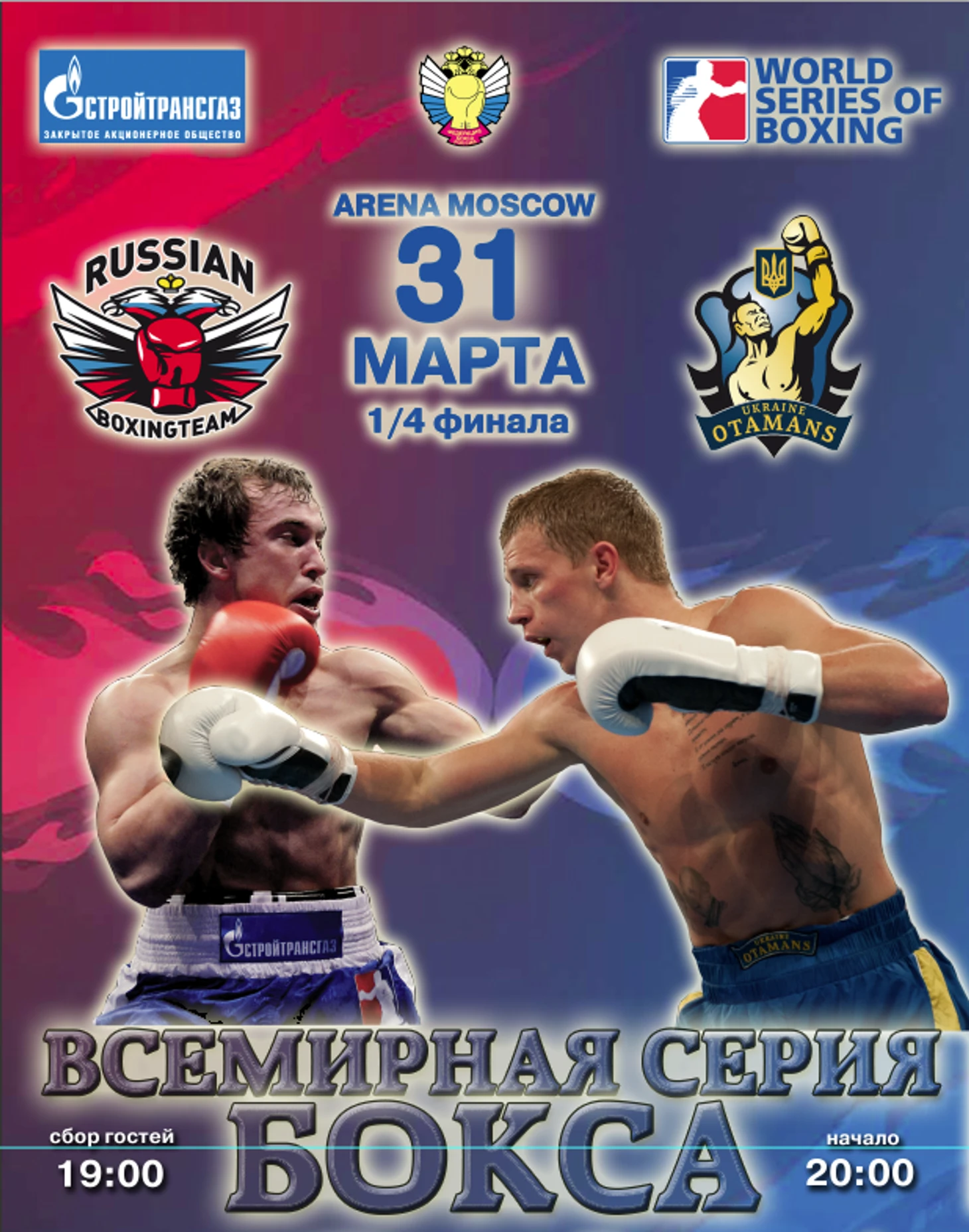19.00. Sports.ru начинает текстовый онлайн-репортаж первого четвертьфинального матча Всемирной серии бокса между командами из России и Украины.