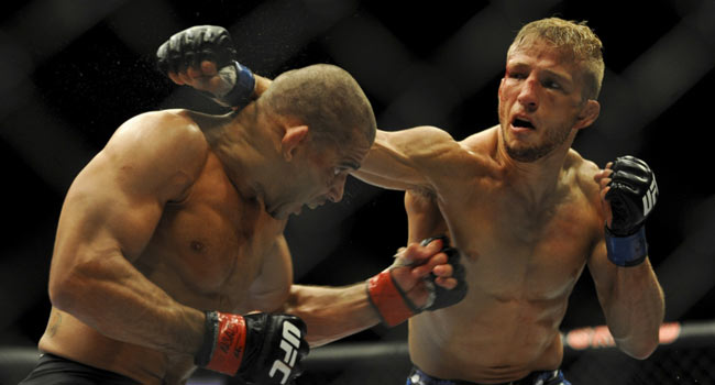 А вот тут всех ждала сенсация. Ти-Джей Диллэшоу – лютый андердог по мнению букмекеров (коэффициент на него был 5.75, в то время как на Барао – 1.111), человек, в которого не верил ни один из американских экспертов-аналитиков, не говоря уже о фанатах. Боец, чья оппозиция до этого матча была явно слабее, чем у бразильца и общий рекорд в UFC 5-2 (в то время как у Барао 7-0) взял и вопреки всему разорвал чемпиона на британский флаг. Вот какие чудеса творят бешеная мотивация, вера в собственные силы и поддержка боевых товарищей. Ти-Джей говорил, что заткнёт рты критикам и всем тем, кто не давал ему никаких шансов, и теперь весь мир знает, чего стоят его слова. Мужик сказал – мужик сделал. Этот апсет поверг в шок ММА сообщество, а множество бойцов выразили огромный респект Диллэшоу и отметили, что выступление было великолепным, и что дивизион получил в его лице более чем достойного чемпиона.