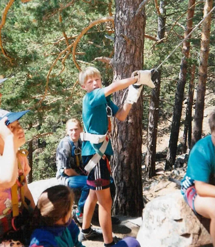 Воспоминание из детства. В детстве я горным альпинизмом занимался. Конкретно эта фотка в Боровом сделана, это скальная подготовка. И сейчас помню, как со всем снаряжением обращаться, в горах бы полазил с удовольствием, это ж очень интересно. Правда, мне сейчас сложнее было бы намного: силы, выносливости не меньше, но тогда я весил 60 кг, а сейчас 90, я теперь неуклюжий немного для альпинизма. Ну и на камень или уступ какой-то одно дело 60, а другое 90 кг давит. Есть же разница.