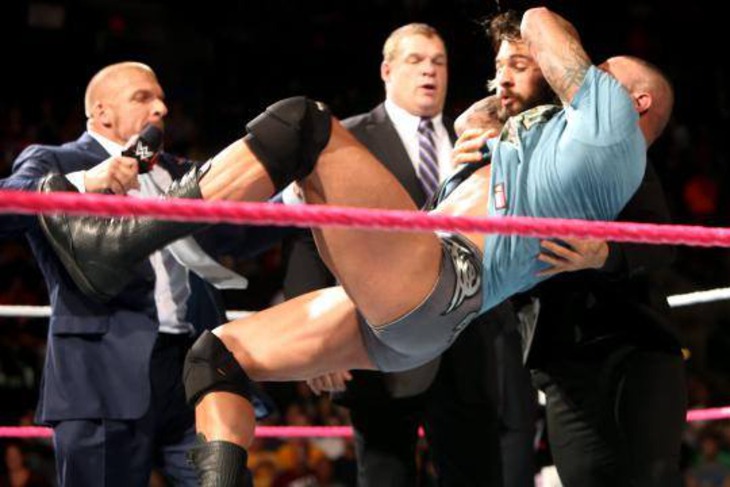 Фейстёрн Ренди Ортона. Два медведя, как известно, в одной берлоге ужиться не могут. И как только Трипл Эйч подписал к себе в команду Сета Роллинза, у них с Ренди Ортоном моентально началась конфронтация. Масла в огонь подливал и Кейн, и то, что Ортон проиграл свои титулы на Рестлмании, и чемоданчик Роллинса. В конце концов, молодой Сет провёл Ренди коронный "кёрпстоун" и это стало последней каплей в море - Вайпер послал к чертям всё Руководство и начал методично уничтожать всех, кто имел отношения к чете Макмэнов, пока его не позвали сниматься в кино. Сегодня, кстати, вышли первые фото с хаус-шоу, так что ждём возвращения Ренди на большой экран.