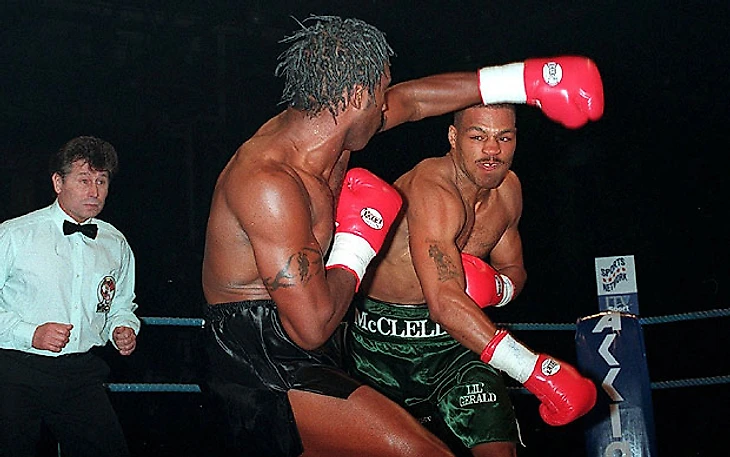 Поединок Джеральда Макклеллана и Найджелла Бенна состоялся двадцать лет назад (и, кстати, был увенчан «Нокаутом года» по версии журнала The Ring). Отрывки той бойни я наблюдал еще тогда: сначала в новостях, где показывали отрывки из боя (мне почему-то тогда казалось, что Бенн – это американец с короткой стрижкой, а не британец с полудредами), затем в программе «Большой Ринг».