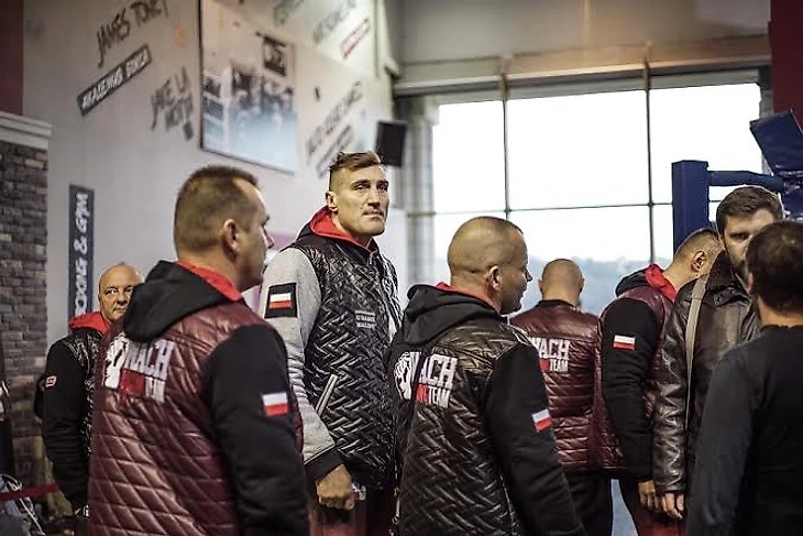 У Мариуша Ваха целая бригада, человек 8 – настоящая маленькая армия дюжих молодцов в спортивных костюмах цветов польского флага. Пара человек, может, сойдет за полутяжей, остальные весят немногим меньше самого двухметрового громилы Ваха. Вежливые, корректные, приятные ребята с суровыми физиономиями, в нужный момент создают вокруг Мариуша эффект толпы и родного дома. Аплодисменты и одобрительные крики в ключевые моменты, съемка видео на телефон, перевод на русский, тейпирование рук, советы во время боя – Бог знает, что еще они умеют. Вах и Поветкин – старые спарринг-партнеры, считай, коллеги по работе. Никакой злобы и напряжения между ними нет.