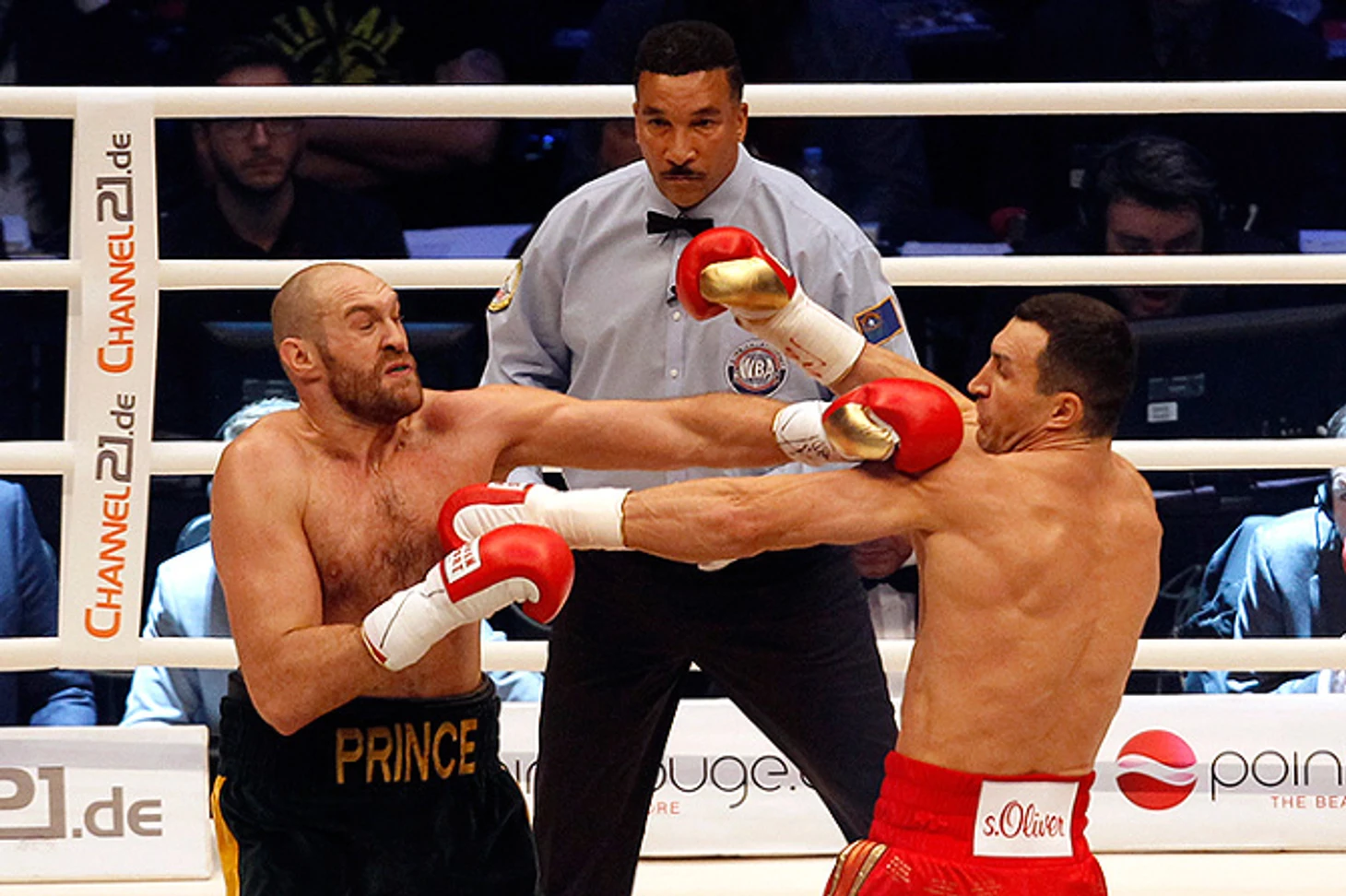 21.35. В ринг против чемпиона мира в супертяжелом весе по версиям WBA, WBO и IBF Владимира Кличко выйдет британец Тайсон Фьюри, который пока никому не проигрывал, который выше и тяжелее украинского боксера, и которого уже называют королем. Пока только цыганским. Но если Фьюри выиграет сегодня, станет королем бокса. И говорить в ближайшие месяцы, а может быть и годы, будут только о нем.