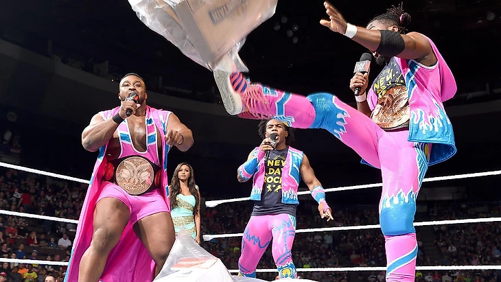 Далее на ринг поднялись участники "Новый день", неся в руках помимо привычных хлопьев ещё и тюки с чем-то воздушным. Как выяснилось позже, командные чемпионы заявили, что считают всех участников "Лиги наций" мешками с мусором, после чего поочерёдно выпнули весь реквизит за пределы ринга (Ксавье забавно заботчил последний пинок) под смачные остроты в адрес своих соперников. "Международники" не заставили себя долго ждать и нам показали обычный поединок "1 на 1". За рингом почти всё время происходила какая-то борьба между кланами, пока Кофи и Барретт проводили свой матч. В какой-то момент Биг И и Ксавье расчистили всё пространство вокруг ринга, и уроженцу Бостона удалось удачно свернуть Короля, после чего "Новый день" быстро покинули арену.