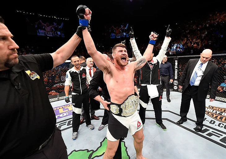 Биспинг-чемпион это очень ненадолго, но в то же время это одна из лучших мотивирующих историй в ММА. Он пришел в UFC 10 лет назад, уверенно бил середняков, но до 2016 года проигрывал абсолютно все важные бои, которые могли бы приблизить его к бою за титул: Эвансу, Хендерсону, Вандерлею, Соннену, Белфорту и в 2014-м Рокхолду. Наконец 27 февраля 2016 года Биспинг оказался нокаутирован Андерсоном Силвой, но был спасен гонгом, довел дело до решения судей и под вопли "Буллщит!" был объявлен победителем. Титульным стал только его 25-й бой в UFC - причем только потому, что травмировался Уайдман, а заменить его отказался Жакаре. Биспинг пример трудолюбивого бойца, у которого нет суперудара, нет особо опасного джиу-джитсу, нет амплитудных бросков, нет какой-то сверхскорости: все качества развиты у него на более-менее среднем уровне. И иногда такой средний, почти заурядный в плане техники боец может потушить какую угодно звезду.