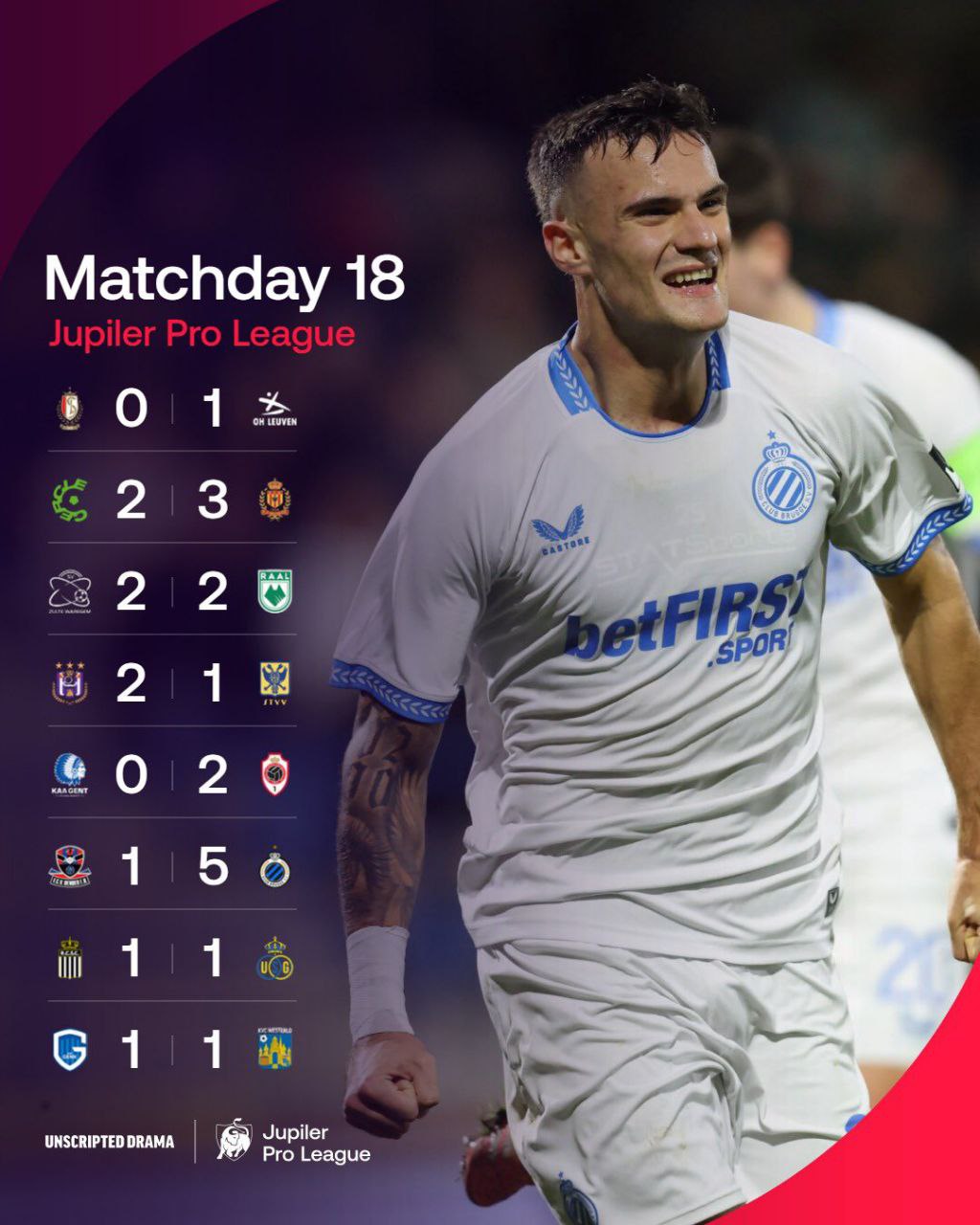 Обзор 18-го тура чемпионата Бельгии сезона-2025/26.