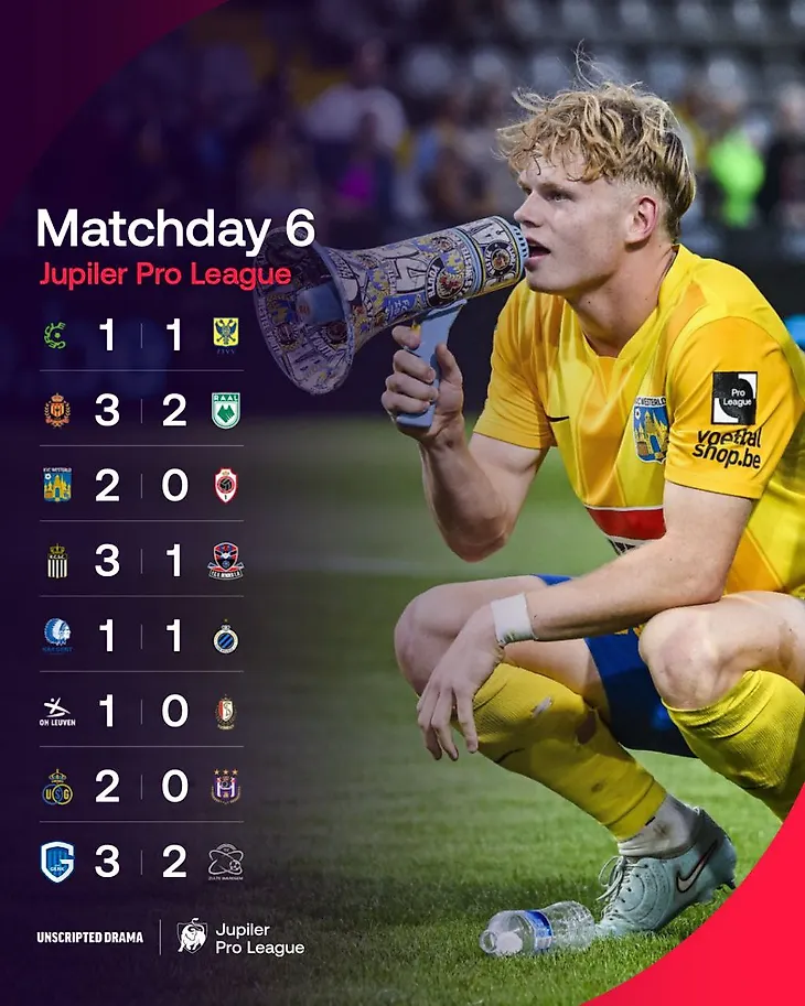Обзор 6-го тура чемпионата Бельгии сезона-2025/26.