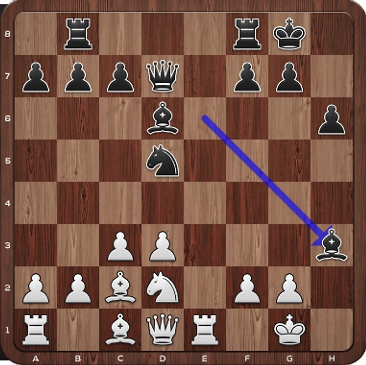 11.h3 h6 12.exd5 Nxd5 13.Nxe5 Nxe5 14.Rxe5 Bd6 15.Re1 Bxh3!